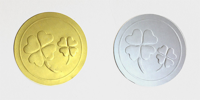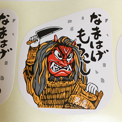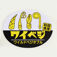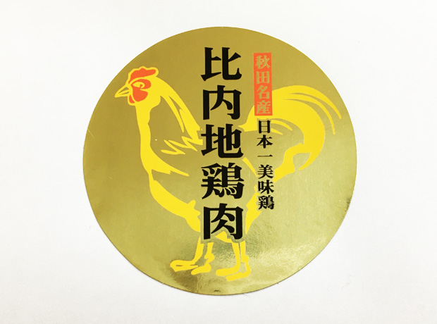 秋田県の特産品に貼るシールです。平圧機にて印刷。凸版は樹脂。金ホイル紙に特色指定で黄・赤・黒の三色で印刷しました。